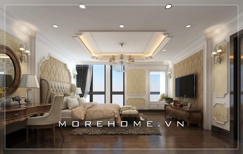 Mẫu thiết kế phòng ngủ chung cư cao cấp phong cách tân cổ điển
