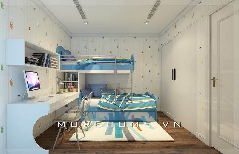 Mẫu tủ gỗ công nghiệp âm tường cũng được gia chủ lựa chọn cho không gian phòng ngủ con