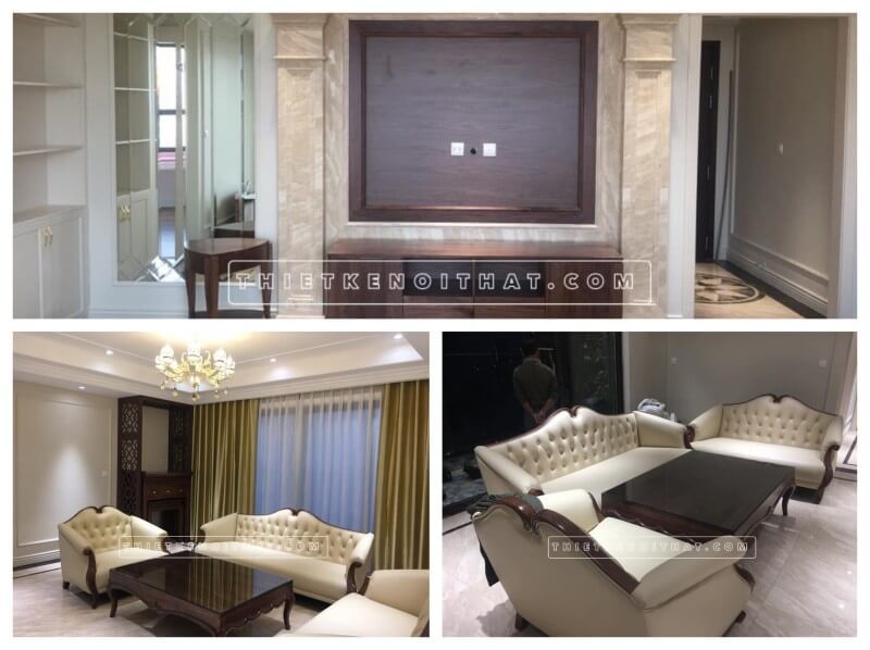 Thi công phòng khách tân cổ điển chung cư D'capital Trần Duy Hưng Cầu Giấy Hà Nội
