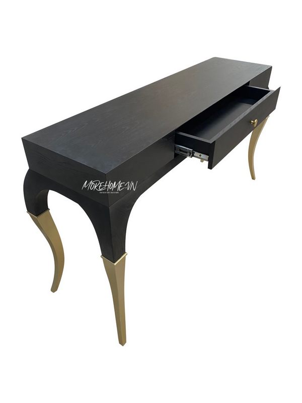 Bàn trà gỗ tự nhiên Tần bì sơn đen kết hợp sơn nhũ cho phòng khách thêm sang trọng, tiện nghi